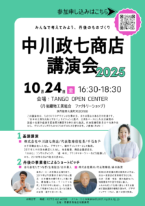 Release Date 2025.10.07 lecture CATEGORY 絹セリシン 与謝野町 京丹後市 補助金のご案内 新年のご挨拶 TV放映 セミナー 新商品 展示会 メディア イベント 事業者向け お知らせ プレゼント 創業300年 シルクナレッジ